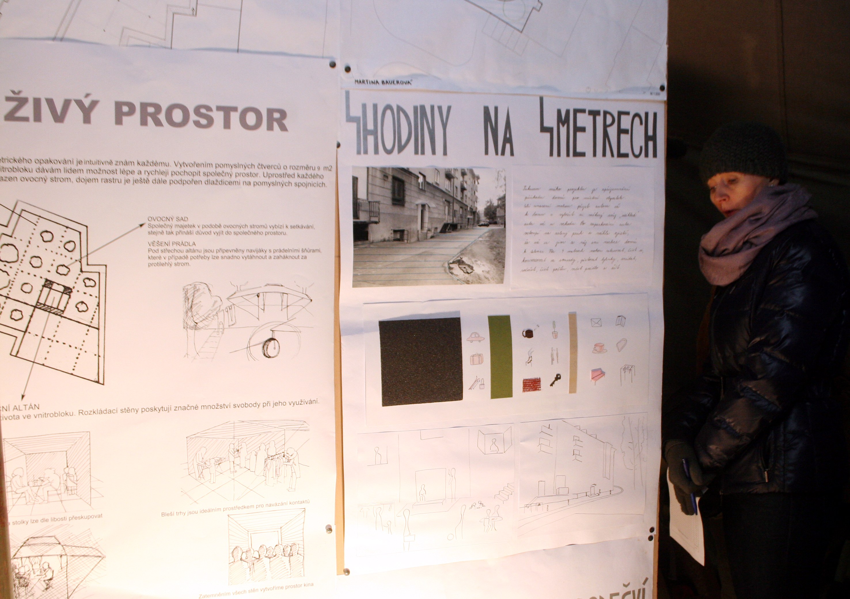 Studenti z Fakulty umění a architektury na Technické univerzitě v Liberci byli coby partneři projektu „Dobrý den, pojďte ven!“ přítomni též. „Abychom představili naše návrhy. Ten můj spočívá v konstrukci na prádlo doplněné o lavičky. Řeším také čas po věšení prádla,“ uvedla Eliška Málková, autorka vize „Po věšení“.