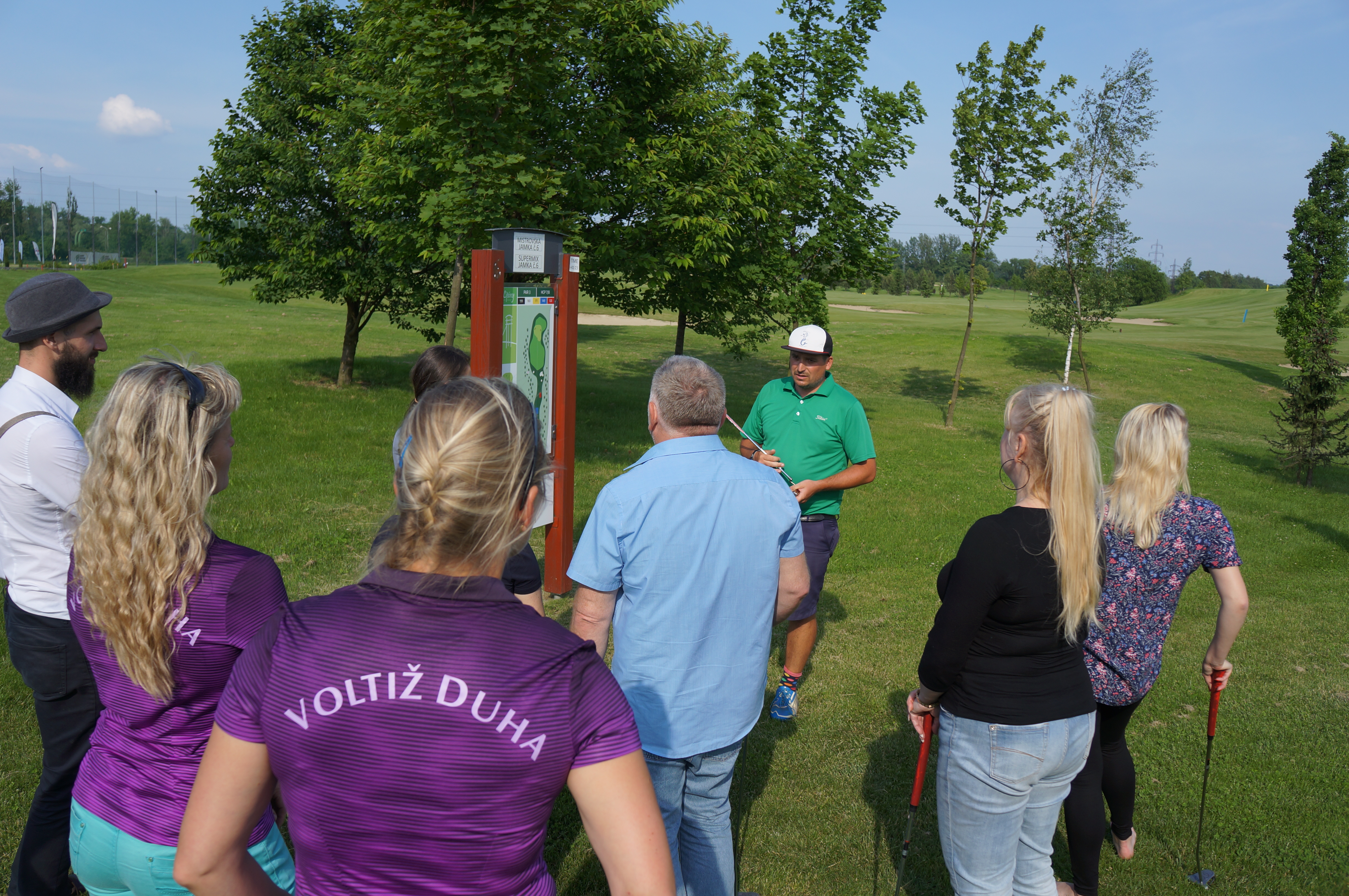 Jako zábavu jsme si pro naše hosty připravili dvě lekce golfu pod vedením zkušených lektorů Michala a Veroniky. Celé odpoledne pak pokračovalo v soutěžním duchu Retro kvízu, ve kterém zvítězilo nejméně početné družstvo.