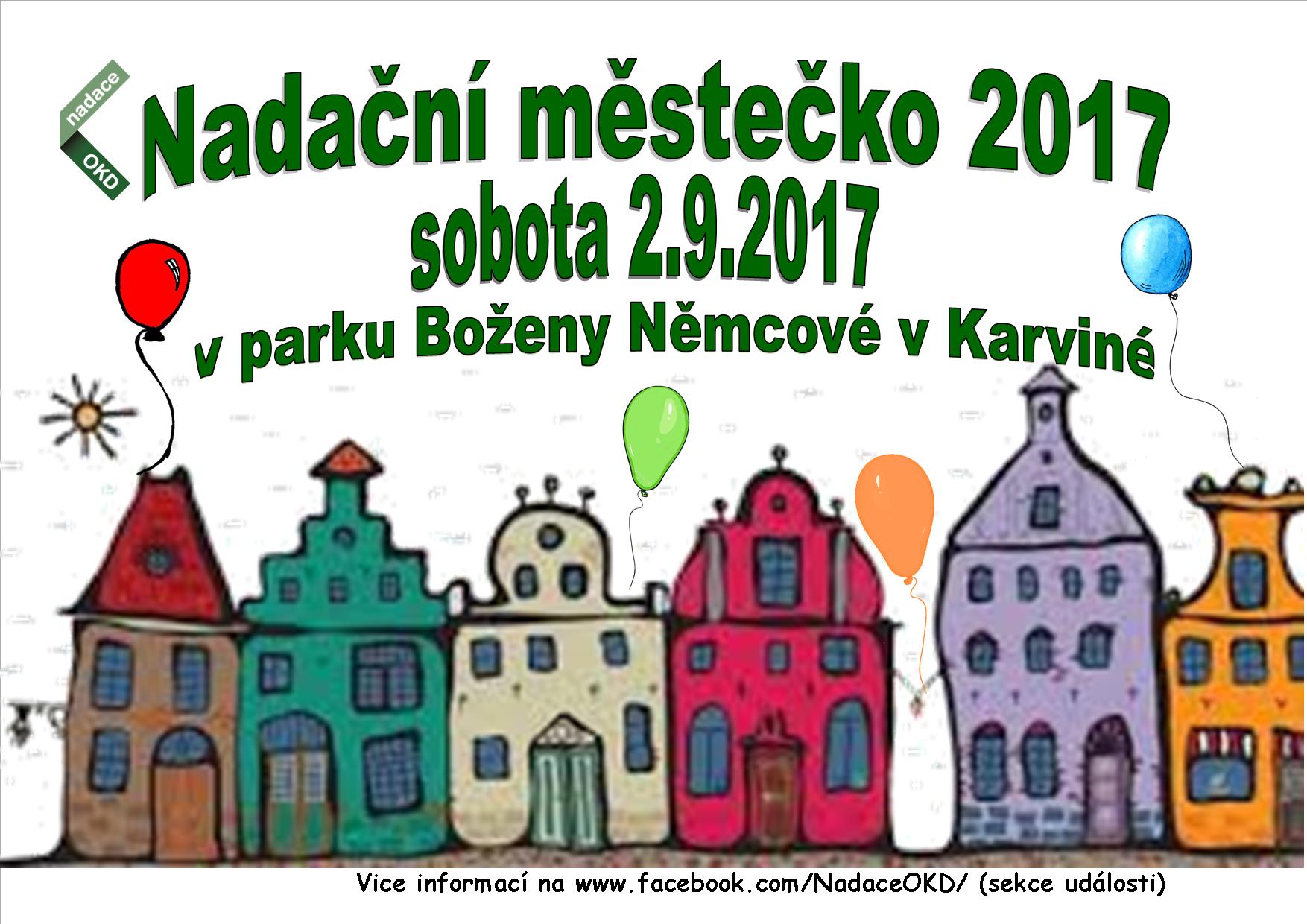 V sobotu 2. 9. 2017 bude park Boženy Němcové v Karviné plný zábavy, hudby a lidí. Po dvou letech se budou opět konat Hornické slavnosti. A my jsme se rozhodli, že pro vás připravíme oblíbené Nadační městečko, které společně s námi zajišťují neziskové organizace z regionu.