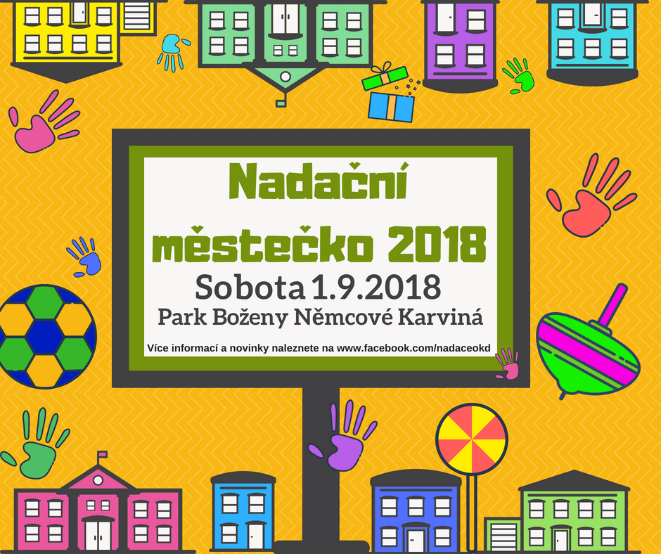 V sobotu 1. 9. 2018 ve 14:00 hodin park Boženy Němcové v Karviné opět ožije hudbou a zábavou pro každého. V rámci Hornických slavností 2018 pro vás opět postavíme Nadační městečko, které společně s námi zajišťují neziskové organizace z našeho regionu.