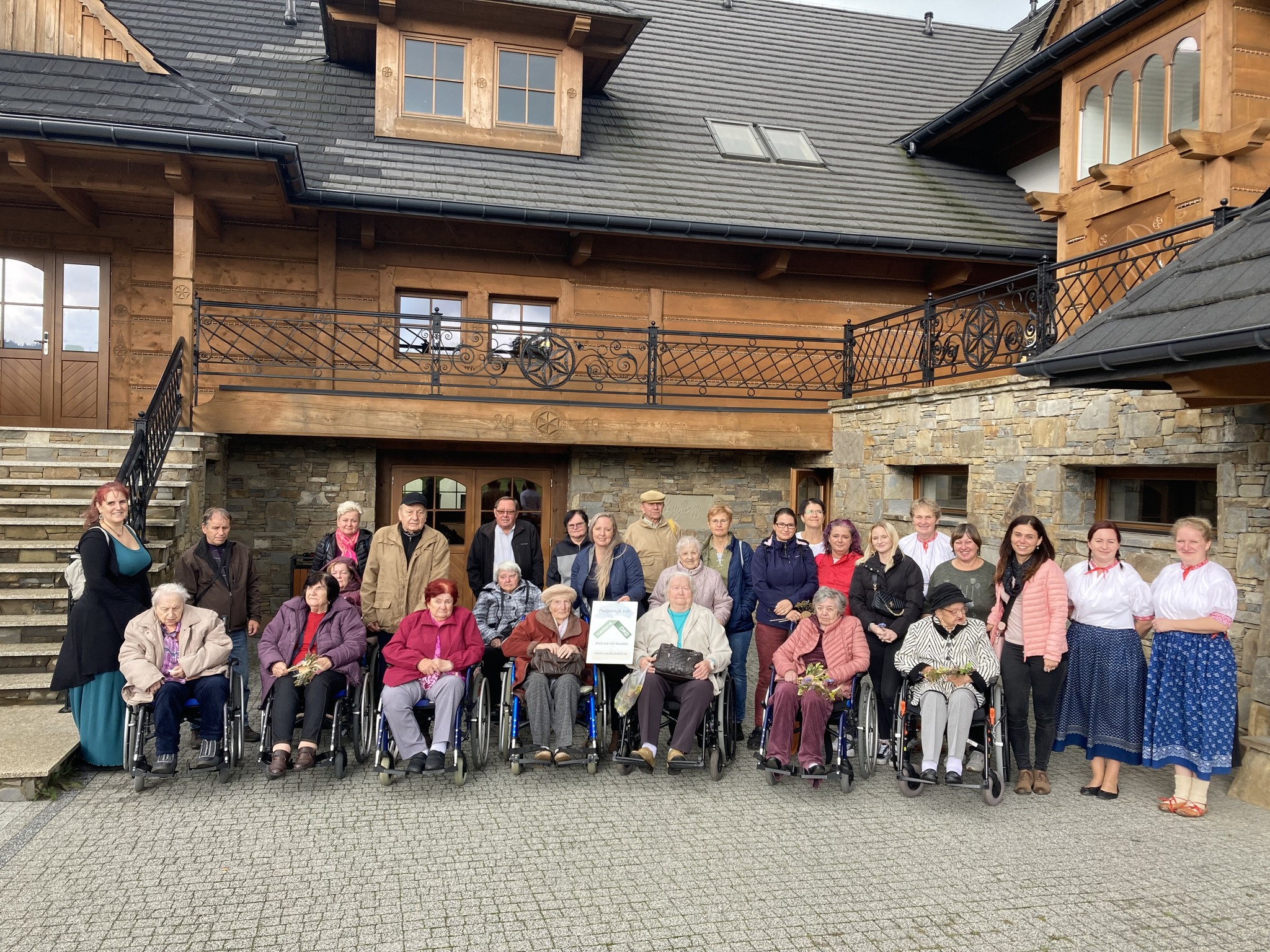 V rámci projektu Nadace OKD „CESTUJEME PRO RADOST“, kdy nám nadace věnovala 14 000,- a zbytek byl hrazen ze sponzorských darů, jsme se rozhodli opustit zdi Domova a poznat trochu blíže Mosty u Jablunkova. Klienti si připomenuli některé kulturní tradice našeho regionu, zavzpomínali na své dětství, kdy jejich maminky dojily krávu a poté ze smetany tloukly máslo, nebo když k nim chodil dráteník opravovat hrnce. Ale zároveň si i osvojili nové vědomosti o životě Goralů, či získali nové recepty z místní tradiční kuchyně. A aby to byla ta pravá oslava Mezinárodního dne seniorů, nesměla chybět dobrá hudba. Celý program nám zpříjemnil poslech lidové kapely Josef a Karel. Dokonce se i tančilo. Klienti také dostali prostor k seberealizaci, kdy si mohli vytvořit plstěný zápich do květináče, pomocí drátkování vyrobit věšáček na klíče a nebo krásnou sluníčkovou dekoraci. Veškeré výrobky si poté mohli vzít do Domova, kde budou milou vzpomínkou na příjemně strávený den. Po načerpání nových vědomostí, dobrém jídle i pití a aktivizaci následoval další kulturně vzdělávací program. Klienti navštívili tradiční dřevěnou roubenku a výstavu obrazů a vyšívaných ubrusů od Milady Hlawiczkové - „Štětcem a jehlou“.
